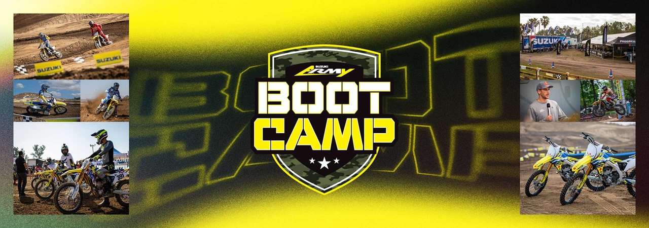 RM Army Boot Camps let Suzuki owners hang out and ride with their favorite PMG Suzuki team riders at select MX tracks throughout 2025. These are one-day events offering an exclusive, friendly and immersive experience featuring: