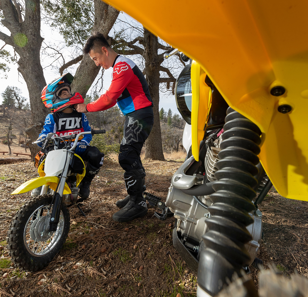 Loading...DR-Z50The DR-Z50 allows young riders to tackle the great outdoors where adults can match engine power level to rider skill.