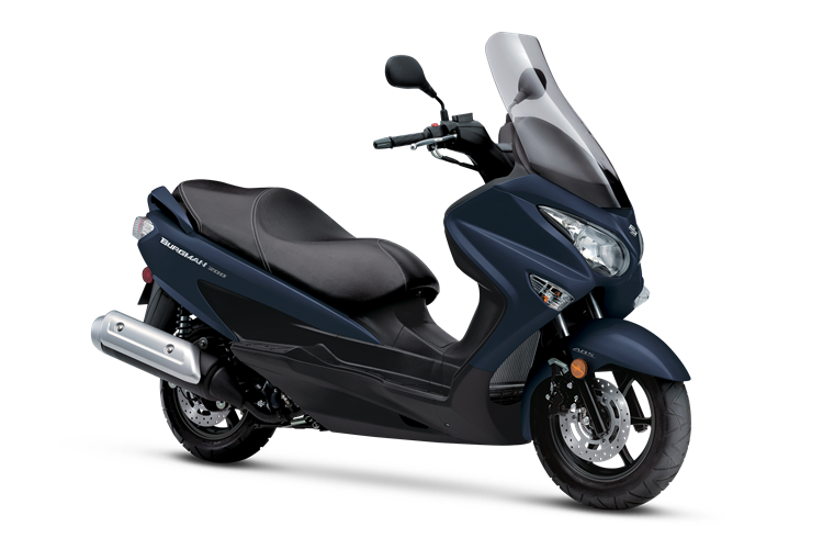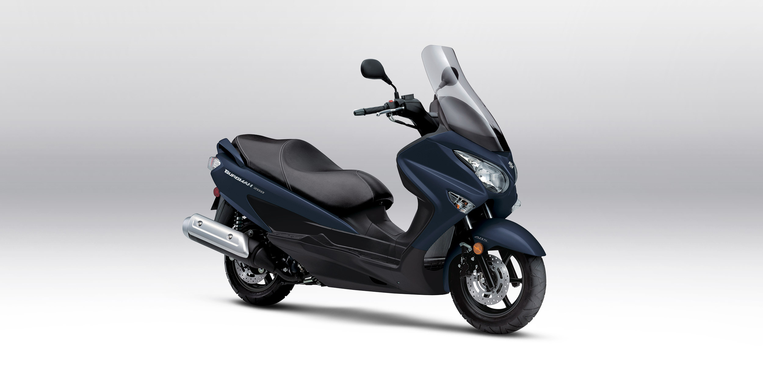 The telescopic oil-damped front fork and swingarm-style rear suspension make the Burgman's ride sporty and smooth.
