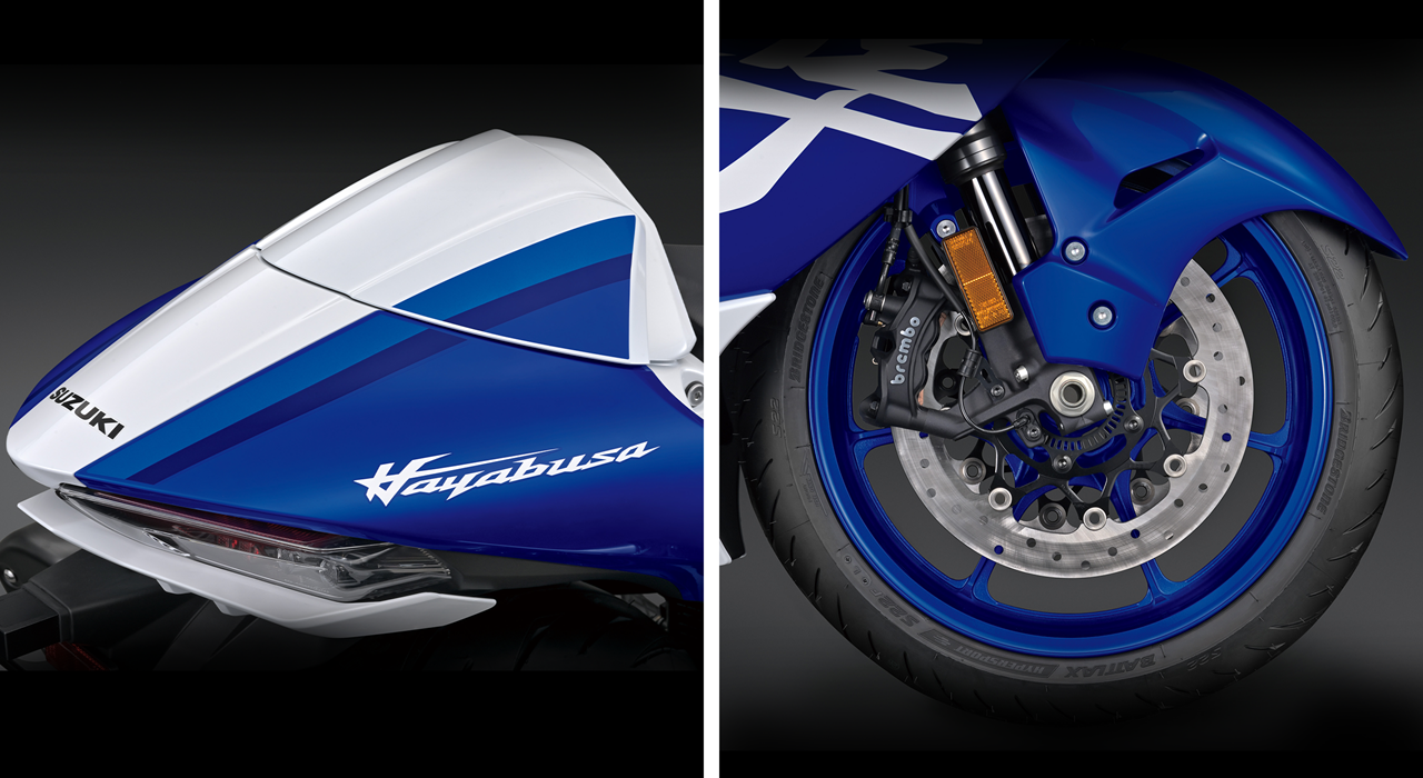 The styling of the bodywork intentionally conveys a modern image of advanced performance and effective features, while faithfully inheriting the wind-cutting silhouette and overall look for which the Hayabusa is famous.