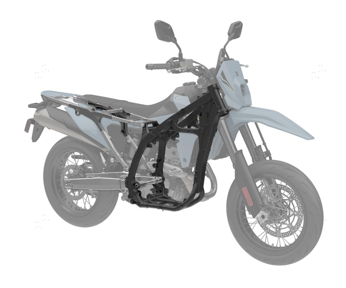 View Product BrochureNew twin-spar steel frame and aluminum sub-frame give exceptional torsional rigidity and greatly enhance the DR-Z4SM’s handling characteristics.