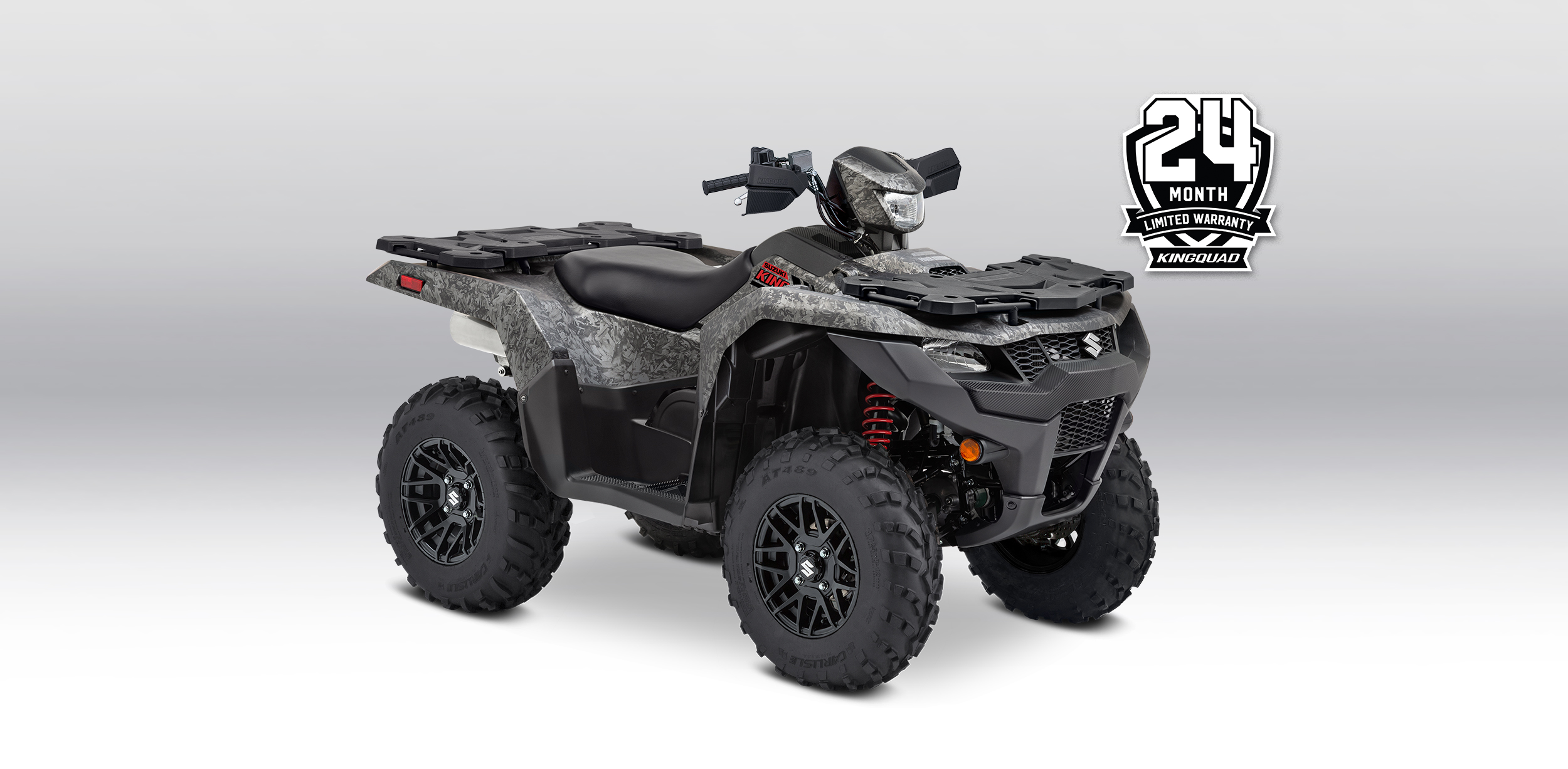 *A purchase of a new Suzuki KingQuad model will include a 24-month limited warranty and an additional 24-month Suzuki Extended Protection (SEP) vehicle service contract for a total combined coverage of 48 months. Available at participating Suzuki dealers in continental U.S. excluding HI. See dealer for details. Suzuki KingQuad ATV's may be used by those aged 16 and older. Offer valid from 11/01/2025 to 12/31/2025.